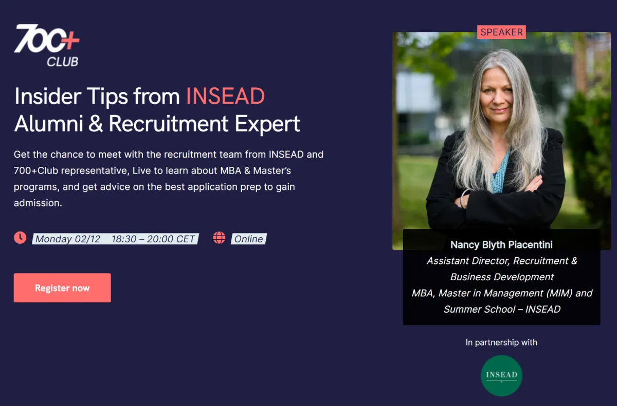 Join us for an exclusive webinar presented by 700+ Club in collaboration with INSEAD βyour opportunity to gain insider insights into one of Europeβs leading business schools.